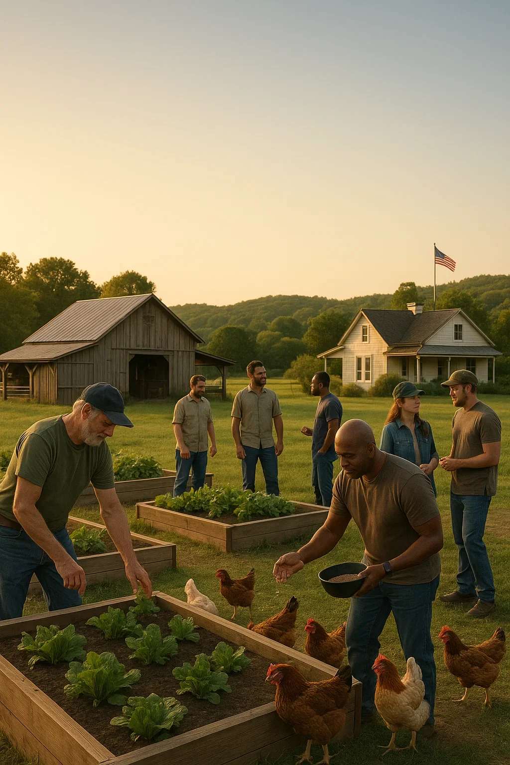 A grounded, peaceful space where veterans can reconnect with purpose through farm work, community, and quiet strength.